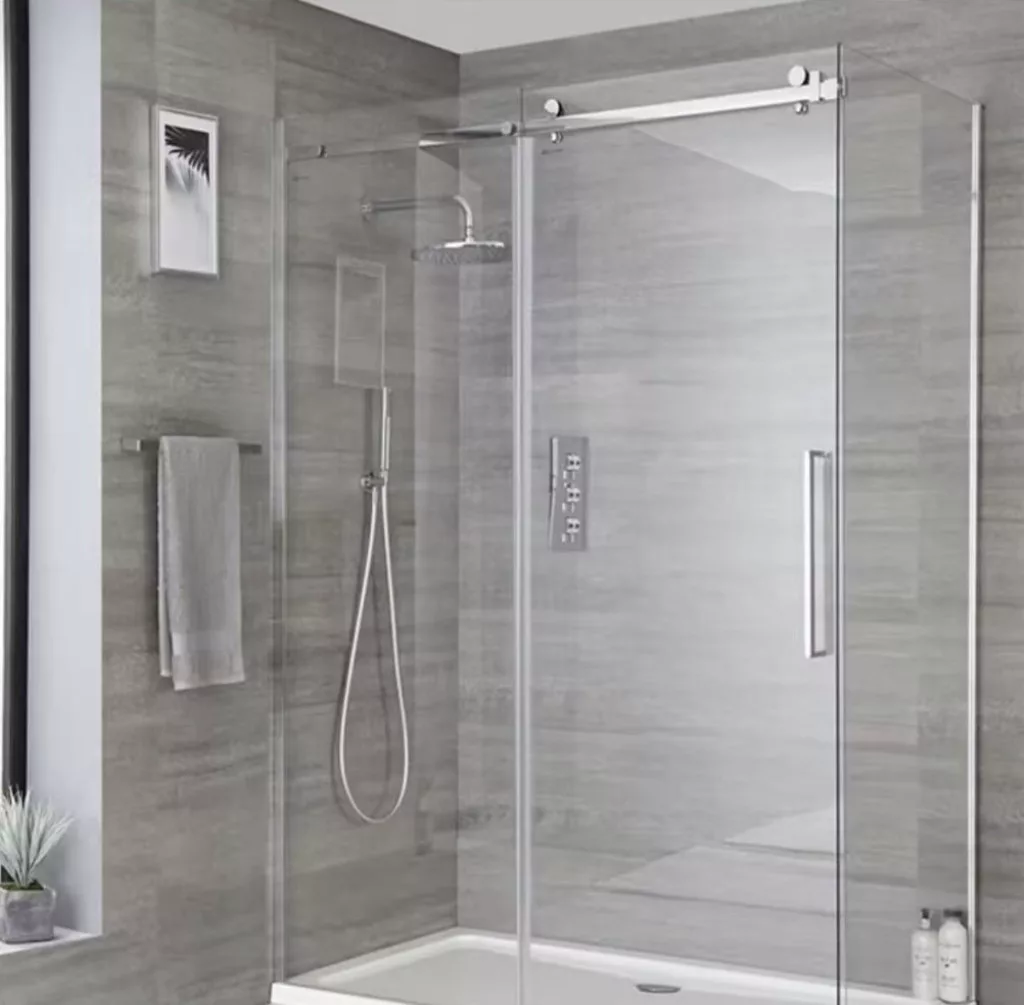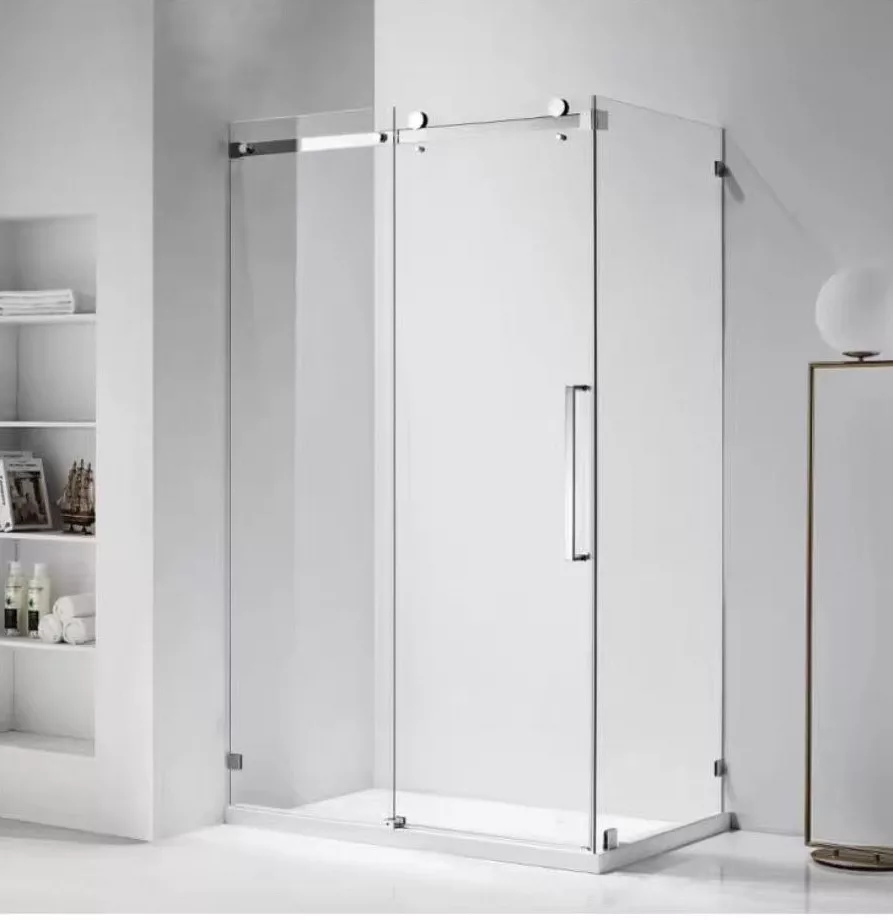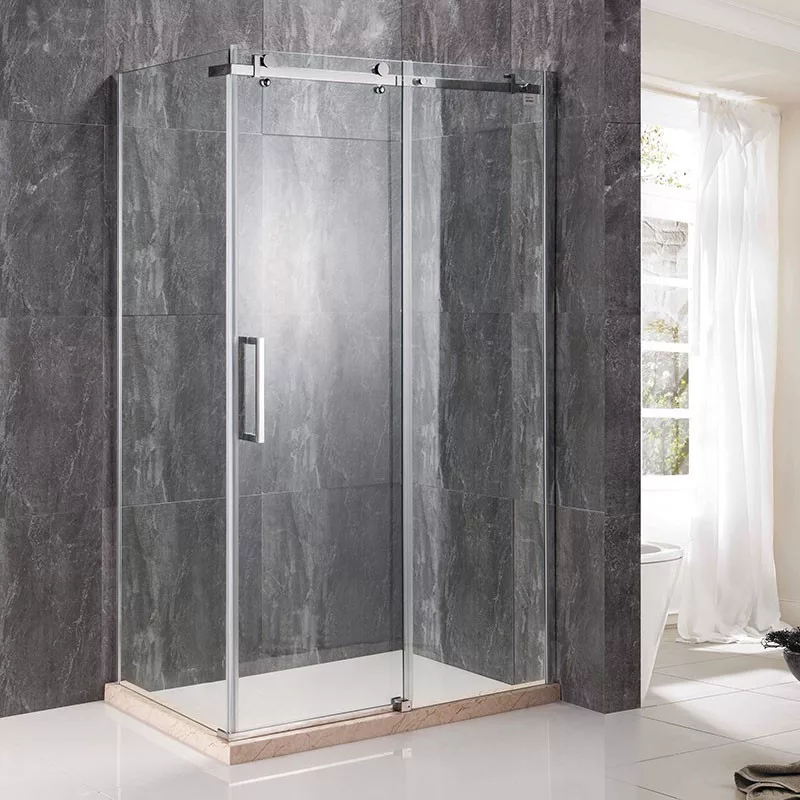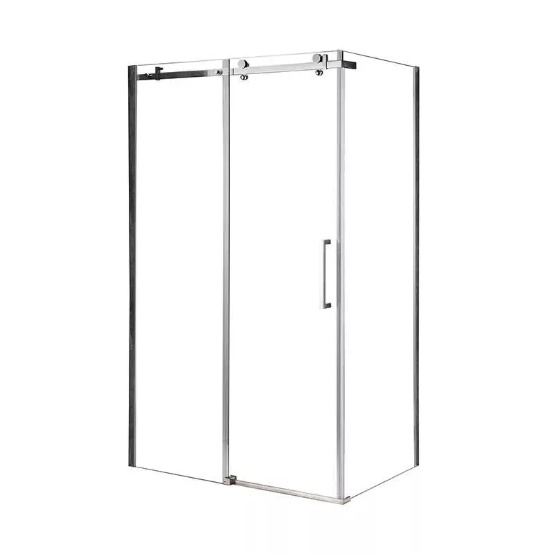 A rozsdamentes acél fogantyú és a krómozott sárgaréz görgők könnyű, halk és gördülékeny ajtómozgást biztosítanak. A krómozott rozsdamentes acél ajtótartó és a krómozott alumínium keret modern megjelenést ad, miközben fokozott korrózióállóságot garantál. A mágneses zár gondoskodik a megbízható vízzárásról, így elkerülhető a szivárgás.