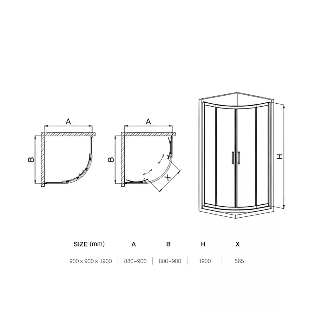 - Méret: 90 × 90 × 190 cm
